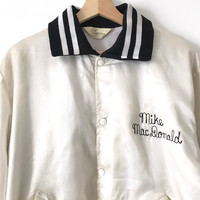Authentic Vintage RARE Piece Gem Sportswear USA Mike Mac Donald’s 97X FM The Amazing FM Radio Promo Jacket. Tag Gem Sportswear, made in USA. Mike Mac Donald is a Canadian born artist and entertainer. Chainstitch embroidery on front and back of the jacket. Size : L Measurement : Width (Armpit-armpit) : 25 Inch Length (Shoulder to bottom) : 26 Inch Material : Sateen / Nylon Condition : B (Worn conditions) A+ = Perfect! (Almost new/new/deadstock) A = Great (All in good shapes. No fade spot/fades). B+ = Vintage looks (minor fade spot/fades). B = Vintage looks with minor defect (stain/rip or hole/minor damage). Please read our shop policies before buying. Please also check the details and measurement. If you need further details, do contact us. Thank you for viewing! *** Please expect delays on some shipment due to the Covid-19 global pandemic. Will do the best to keep purchases safely delivered in good condition. Stay safe & let’s hope for a better future! Thank You!