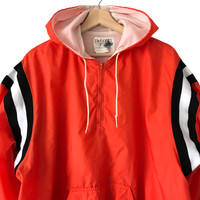 Authentic Vintage 1970s DeLong Sportswear Hoover Swimming Hooded Jacket. Tag DeLong, made in USA. Talon zipper. Size : XL Measurement : Width (Armpit-armpit) : 25 Inch Length (Shoulder to bottom) : 28 Inch Material : Nylon Condition : A A+ = Perfect! (Almost new/new/deadstock) A = Great (All in good shapes. No fade spot/fades). B+ = Vintage looks (minor fade spot/fades). B = Vintage looks with minor defect (stain/rip or hole/minor damage). Please read our shop policies before buying. Please also check the details and measurement. If you need further details, do contact us. Thank you for viewing!
