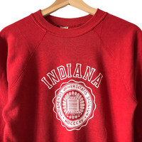 Authentic Vintage 1970s Indiana University USA Logo Crewneck. Tag Vintage, made in USA. Size : 36 (Fits M) Measurement : Width (Armpit-armpit) : 19.5 Inch Length (Shoulder to bottom) : 24 Inch Material : Cotton / Polyester Condition : A A+ = Perfect! (Almost new/new/deadstock) A = Great (All in good shapes. No fade spot/fades). B+ = Vintage looks (minor fade spot/fades). B = Vintage looks with minor defect (stain/rip or hole/minor damage). Please read our shop policies before buying. Please also check the details and measurement. If you need further details, do contact us. Thank you for viewing!
