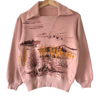 Authentic Vintage Americana Hunting Pullover. Tag Missing, made in Unknown. Size : Fits S/M Measurement : Width (Armpit-armpit) : 19 Inch Length (Shoulder to bottom) : 23 Inch Material : Cotton Condition : A A+ = Perfect! (Almost new/new/deadstock) A = Great (All in good shapes. No fade spot/fades). B+ = Vintage looks (minor fade spot/fades). B = Vintage looks with minor defect (stain/rip or hole/minor damage). Please read our shop policies before buying. Please also check the details and measurement. If you need further details, do contact us. Thank you for viewing!