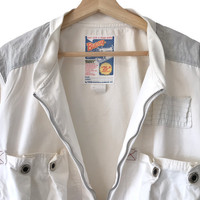 Authentic Vintage 90s Brand Buggy By Toyo Enterprise Japan Double Pocket Tactical / Utility Jacket. Tag Buggy By Toyo Enterprise, made in Japan. Sizes was made to fit the 80s/90s baggy look. Size : L Measurement : Width (Armpit-armpit) : 26 Inch Length (Shoulder to bottom) : 25.5 Inch Material : Cotton Condition : A (Note that collar was made to be that way) A+ = Perfect! (Almost new/new/deadstock) A = Great (All in good shapes. No fade spot/fades). B+ = Vintage looks (minor fade spot/fades). B = Vintage looks with minor defect (stain/rip or hole/minor damage). Please read our shop policies before buying. Please also check the details and measurement. If you need further details, do contact us. Thank you for viewing!