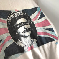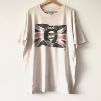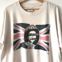 Authentic Vintage 1990s Jamie Reid’s God Save The Queen Sex Pistols Artwork Tee. Tag Gildan 90s, made in Canada. Size : L Measurement : Width (Armpit-armpit) : 22.5 Inch Length (Shoulder to bottom) : 28 Inch Material : Cotton Condition : B+ (See collar, rest is all good) A+ = Perfect! (Almost new/new/deadstock) A = Great (All in good shapes. No fade spot/fades). B+ = Vintage looks (minor fade spot/fades). B = Vintage looks with minor defect (stain/rip or hole/minor damage). Please read our shop policies before buying. Please also check the details and measurement. If you need further details, do contact us. Thank you for viewing! *** Please expect delays on some shipment due to the Covid-19 global pandemic. Will do the best to keep purchases safely delivered in good condition. Stay safe & let’s hope for a better future! Thank You!