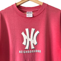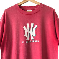 Neighborhood Skateboarding NYC Distressed Vintage 90s Yankees Ripoff Logo Tee. Tag Tultex, made in USA. Archival collectors piece. Size : M Measurement : Width (Armpit-armpit) : 21 Inch Length (Shoulder to bottom) : 29 Inch Material : Cotton Condition : B (Faded, holes, pinholes) A+ = Perfect! (Almost new/new/deadstock) A = Great (All in good shapes. No fade spot/fades). B+ = Vintage looks (minor fade spot/fades). B = Vintage looks with minor defect (stain/rip or hole/minor damage). Please read our shop policies before buying. Please also check the details and measurement. If you need further details, do contact us. Thank you for viewing!