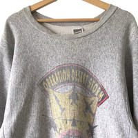 Operation Desert Storm OG US Army Vintage 1990s Distressed Reverse Weave Crewneck Jumper. Tag Hanes Irregular, made in USA. Size : L Measurement : Width (Armpit-armpit) : 22 Inch Length (Shoulder to bottom) : 30 Inch Material : Cotton Condition : B (Wornout, faded) A+ = Perfect! (Almost new/new/deadstock) A = Great (All in good shapes. No fade spot/fades). B+ = Vintage looks (minor fade spot/fades). B = Vintage looks with minor defect (stain/rip or hole/minor damage). Please read our shop policies before buying. Please also check the details and measurement. If you need further details, do contact us. Thank you for viewing!