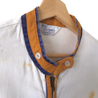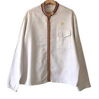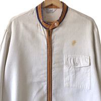 Sears Sportswear Vintage 1960s~70s Zipup Work Jacket. Tag Sears Sportswear, made in USA. Vintage Talon zipper. Size : L Measurement : Width (Armpit-armpit) : 24 Inch Length (Shoulder to bottom) : 27.5 Inch Material : Cotton Condition : B (Rusting stains - from zipper - refer pictures, wornout look) A+ = Perfect! (Almost new/new/deadstock) A = Great (All in good shapes. No fade spot/fades). B+ = Vintage looks (minor fade spot/fades). B = Vintage looks with minor defect (stain/rip or hole/minor damage). Please read our shop policies before buying. Please also check the details and measurement. If you need further details, do contact us. Thank you for viewing!
