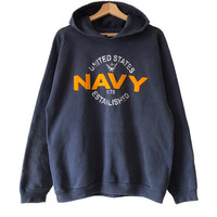 Vintage - US Navy USN Vintage 1990s Big Logo Military Hoodie