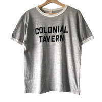 Warehouse Co. Japan Colonial Tavern Slubby Ringer Tee. Tag Warehouse Co., made in Japan. Size : 38 (Fits M) Measurement : Width (Armpit-armpit) : 20 Inch Length (Shoulder to bottom) : 25.5 Inch Material : Cotton Condition : A A+ = Perfect! (Almost new/new/deadstock) A = Great (All in good shapes. No fade spot/fades). B+ = Vintage looks (minor fade spot/fades). B = Vintage looks with minor defect (stain/rip or hole/minor damage). Please read our shop policies before buying. Please also check the details and measurement. If you need further details, do contact us. Thank you for viewing!