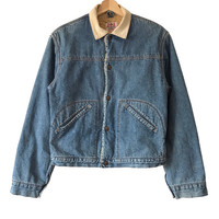 Maverick Blue Bell’s USA Sanforized Fleece Insulated Vintage Denim Trucker Jacket. Tag Maverick Blue Bell’s, made in Japan. Size : M Measurement : Width (Armpit-armpit) : 20.5 Inch Length (Shoulder to bottom) : 23.5 Inch Material : Cotton / Poly Condition : A A+ = Perfect! (Almost new/new/deadstock) A = Great (All in good shapes. No fade spot/fades). B+ = Vintage looks (minor fade spot/fades). B = Vintage looks with minor defect (stain/rip or hole/minor damage). Please read our shop policies before buying. Please also check the details and measurement. If you need further details, do contact us. Thank you for viewing!