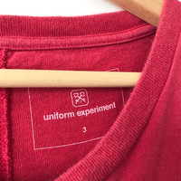 Authentic Uniform Experiment Big Logo Oversize Tee. Tag Uniform Experiment, made in Japan. Size : 3 (Fits L/XL) Measurement : Width (Armpit-armpit) : 24 Inch Length (Shoulder to bottom) : 30 Inch Material : Cotton Condition : A A+ = Perfect! (Almost new/new/deadstock) A = Great (All in good shapes. No fade spot/fades). B+ = Vintage looks (minor fade spot/fades). B = Vintage looks with minor defect (stain/rip or hole/minor damage). Please read our shop policies before buying. Please also check the details and measurement. If you need further details, do contact us. Thank you for viewing! *** Please expect delays on some shipment due to the Covid-19 global pandemic. Will do the best to keep purchases safely delivered in good condition. Stay safe & let’s hope for a better future! Thank You!
