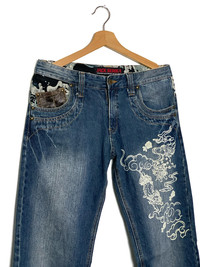 Japanese Brand - Jack Serika Harajuku Style Dragon Fly Denim Jeans Pants