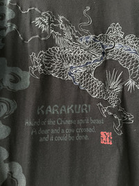 Japanese Brand - Vintage Karakuri Tamashi Japan Dragon Embroidery Tshirt
