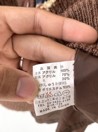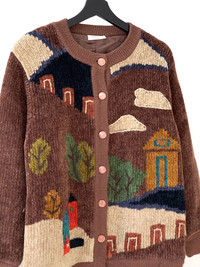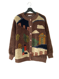 Vintage Minon Printed Fleece Khaki Cardigan Sweater