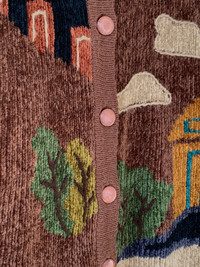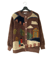 Vintage - Vintage Minon Printed Fleece Khaki Cardigan Sweater