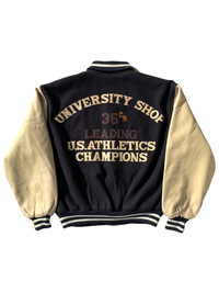 Vintage - Vintage University Shop Embroidered Varsity Leather Jacket