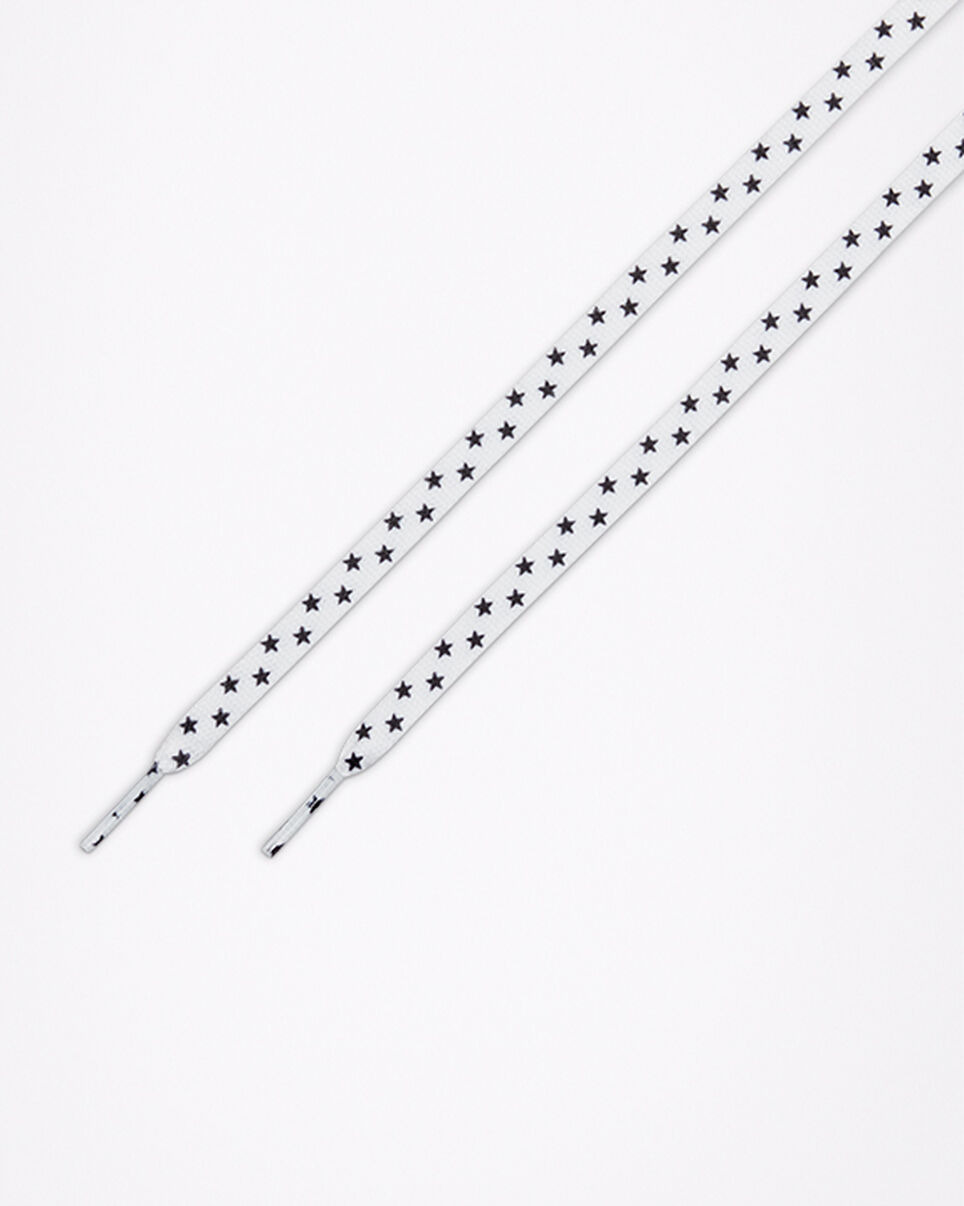 Dress up your favorite sneakers with new, star-studded laces. ALL STAR STYLING. Designed to pair perfectly with your favorite high tops, these starry laces are yet another way to show off your style. WHY YOU SHOULD BE DOWN - A durable polyester weave offers comfortable support. - All-over star prints for added style. - Adjustable for a snug fit. - Laces fit up to 8 pairs of eyelets. - 100% Polyester - SKU: 10019017-A01