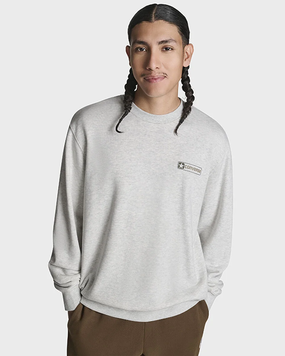 This pullover sweatshirt reps the Converse Star logo at any angle. LEVEL UP YOUR LAYERS With clean lines and a bold identity, the Box Star Crewneck brings just enough visual punch to level up your chilly-weather uniform. WHY YOU SHOULD BE DOWN - Soft cotton-polyester fabric brings everyday comfort - Standard fit for style and comfort - Converse logos on the front and back - Ribbed cuffs and hem help lock in warmth - 80% Cotton, 20% Polyester - SKU: CVM5H820-LGH