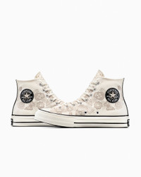 Celebrate Day of the Dead with vibrant details inspired by the annual tradition. FELIZ DIA DE LOS MUERTOS Just in time for Mexico's Day of the Dead celebration, the Chuck 70 gets in the spirit. Details nod to the design motifs that decorate the ofrenda and welcome back the souls of loved ones returning from the afterlife. WHY YOU SHOULD BE DOWN - Heavyweight, durable canvas upper for that structured Chuck 70 look and feel - OrthoLite cushioning helps provide optimal comfort - Details throughout inspired by the rich, multi-layered design motifs of the traditional ofrenda, or altar, created to honor the ancestors - Tonal graphics on the upper and color-pop graphics on the outsole - Candle graphics on the signature All Star patch and license plate - SKU: A17961C