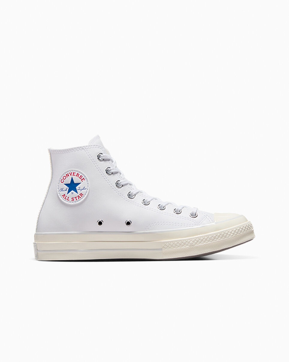 This wardrobe staple gets a leather remix. CLASSIC WITH A TWIST Serve your outfit a little something bold, like these iconic Chuck 70s made from all-over premium leather. Make it rebellious, make it refined— you do you. WHY YOU SHOULD BE DOWN - High-top shoe with a premium leather upper - Vintage-style, faux leather Chuck patch - Aluminium eyelets to rep classic Chuck DNA - Flat cotton laces - OrthoLite cushioning helps provide optimal comfort - SKU: A07201C