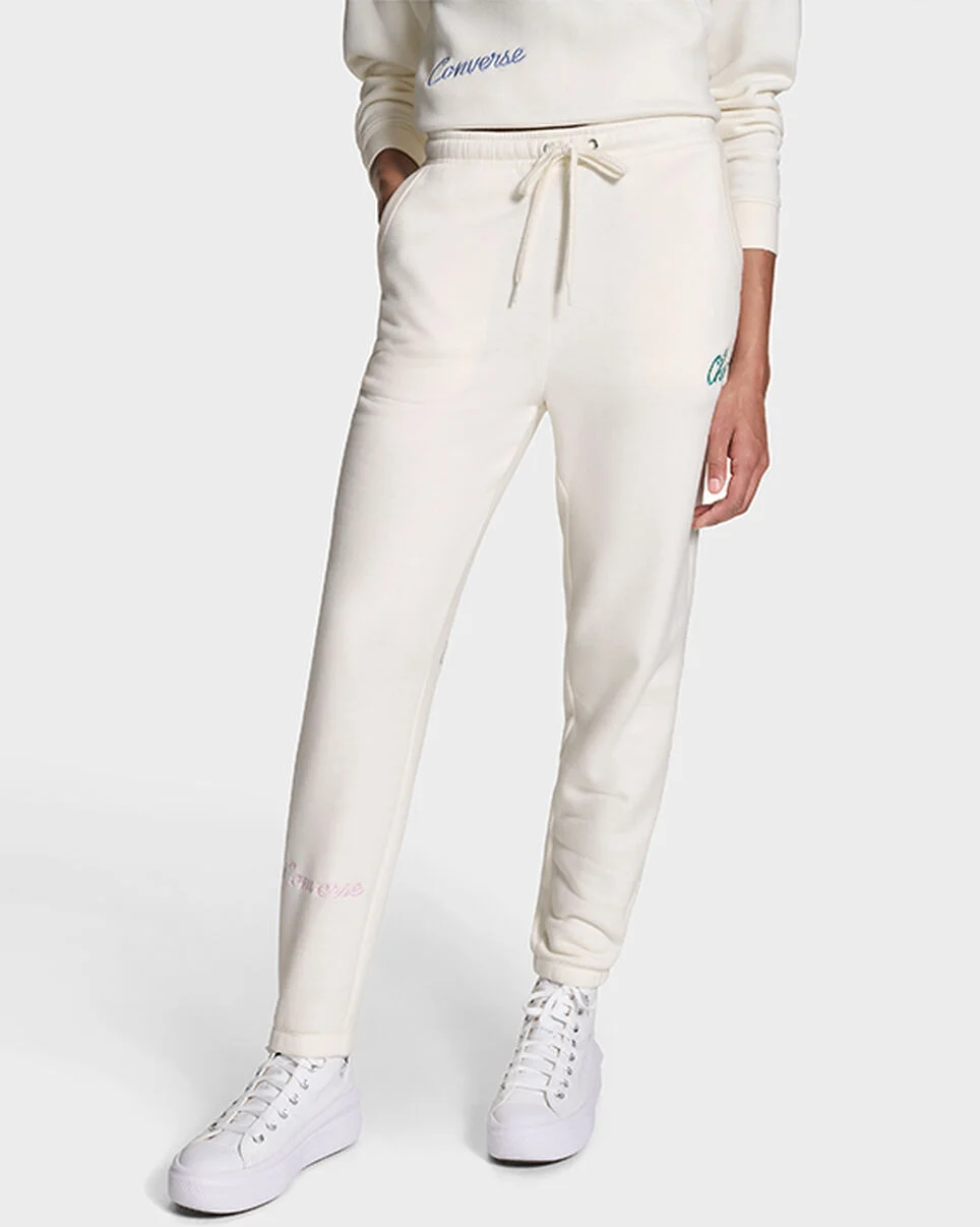 For those who embrace the unexpected. STITCHED IN STYLE Cozy but composed. Embroidered fleece sweatpants add subtle character with tonal cursive and an easy, relaxed shape for everyday comfort. WHY YOU SHOULD BE DOWN - Classic fleece fabric feels soft and cozy - Standard fit for a relaxed, easy feel - Elastic waistband with drawcords helps provide an adjustable fit - Embroidered Converse script reps the legacy - 80% Cotton, 20% Polyester - SKU: CVW6B094-EG7
