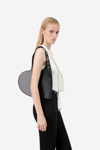 Crafted from smooth leather in sophisticated black, the Belt Heart Tote is a love letter in a bag form. The shape, impossible to ignore, adds a hint of edge along with a belted handle. Spacious and playful, like a romance with a twist. DETAILS - Composition: Calf Leather - Made in: Italy - Sku: COPBA112F6062