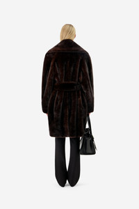 An homage to classic glamour, the faux fur coat brings softness and drama together in an oversized silhouette. Designed in a deep chocolate brown tone, it's cut from quality faux fur with a plush, enveloping texture. The exaggerated shawl collar and tonal bely are punctuated by a signature silver-tone Coperni hardware logo. Details - Composition: Polyester - Made in: Portugal - Sku: COPM06BISF9015