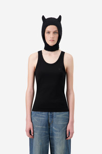 A playful twist on a classic beanie. This knitted wool cap features two pointed horns that peek skyward, as a nod to dark fairytales and subversive charm. The ribbed stitch gives structure and warmth, while the soft wool blend wraps the head in cozy comfort. It's a statement accessory for cool-weather layering. DETAILS - Composition: Wool - Made in: China - Sku: COPSA06Y3005