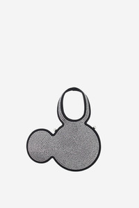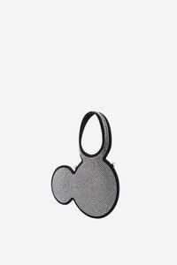 An eye-catching accessory that blends playful spirit with refined allure. This mini tote in a Mickey Mouse shape is designed with top handles and a slim crossbody strap for versatile styling. The satin base is fully encrusted with shimmering silver strass, giving it a dazzling effect that feels both nostalgic and bold. DETAILS - Composition: Satin-Strass - Made in: Italy - Sku: DBA102F9010