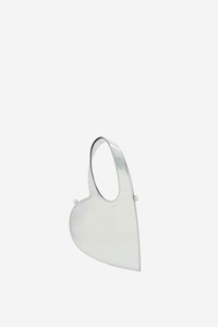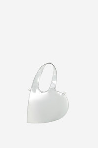 Like its large parent model, the Baby Heart Tote has a charming shape that promises to dress up any style. It has a slim profile ensuring it sits comfortably at your side thanks to a detachable cross-body strap. It can also be handheld thanks to an integrated arched shoulder loop, allowing it to easily transition from casual daytime staple to sophisticated evening bag. In this case, the mirrored silver material shines bright in all lighting, making it the perfect cross-seasonal accessory. DETAILS - Composition: 100% Pu - Made in: Italy - Sku: COPBA93F6005
