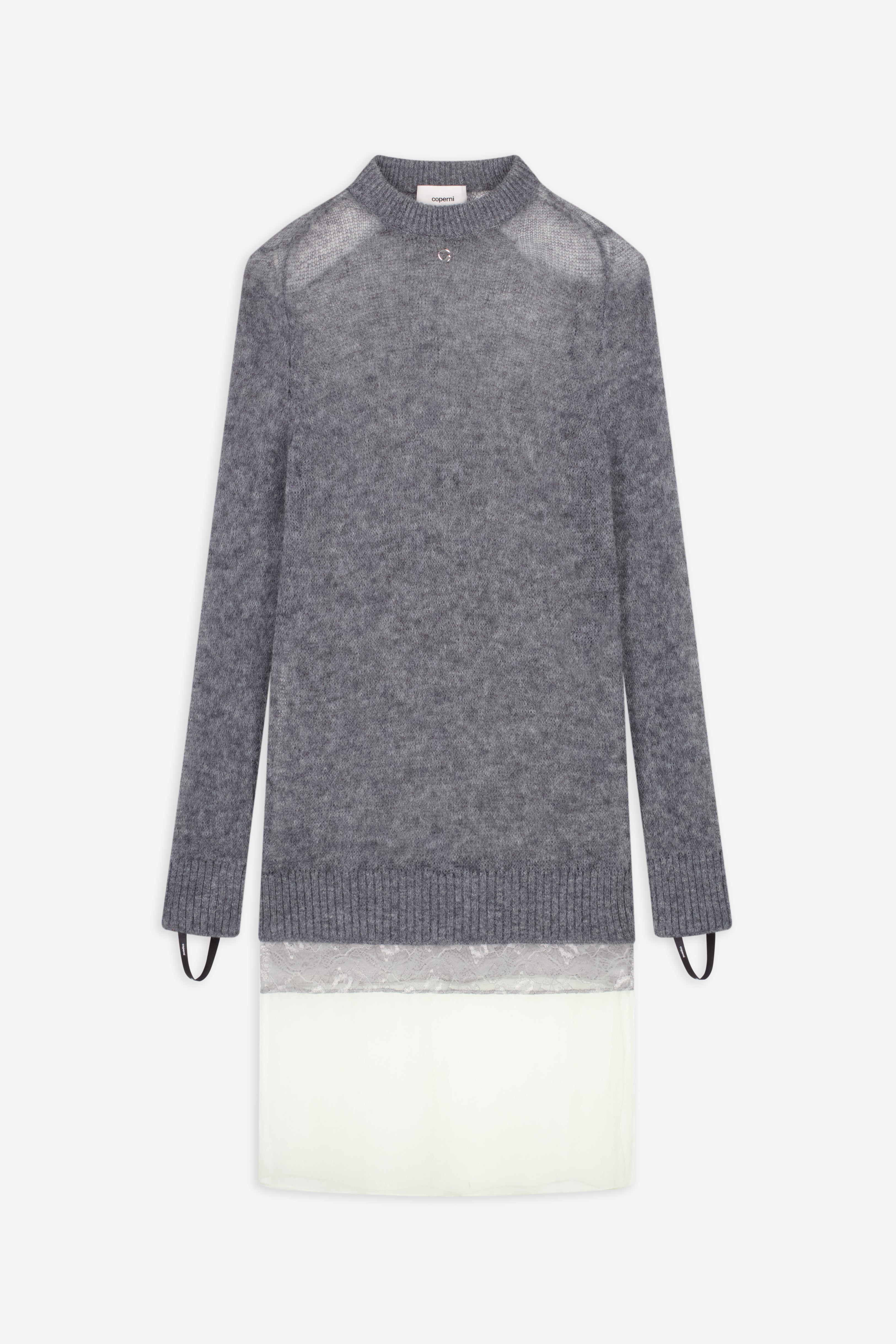 Multi Layer Pullover Dress blends cozy familiarity with an unexpected sense of romance. Knitted from a soft wool blend, it drapes along the body with a natural ease, while the delicate chiffon underlayer trimmed with lace subtly peeks out from the hem. It whispers of sensuality and is designed to be worn with grace. DETAILS - Composition: Wool Blend - Made in: Italy - Sku: COPML172Y1003