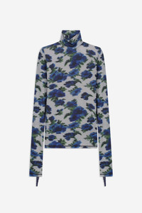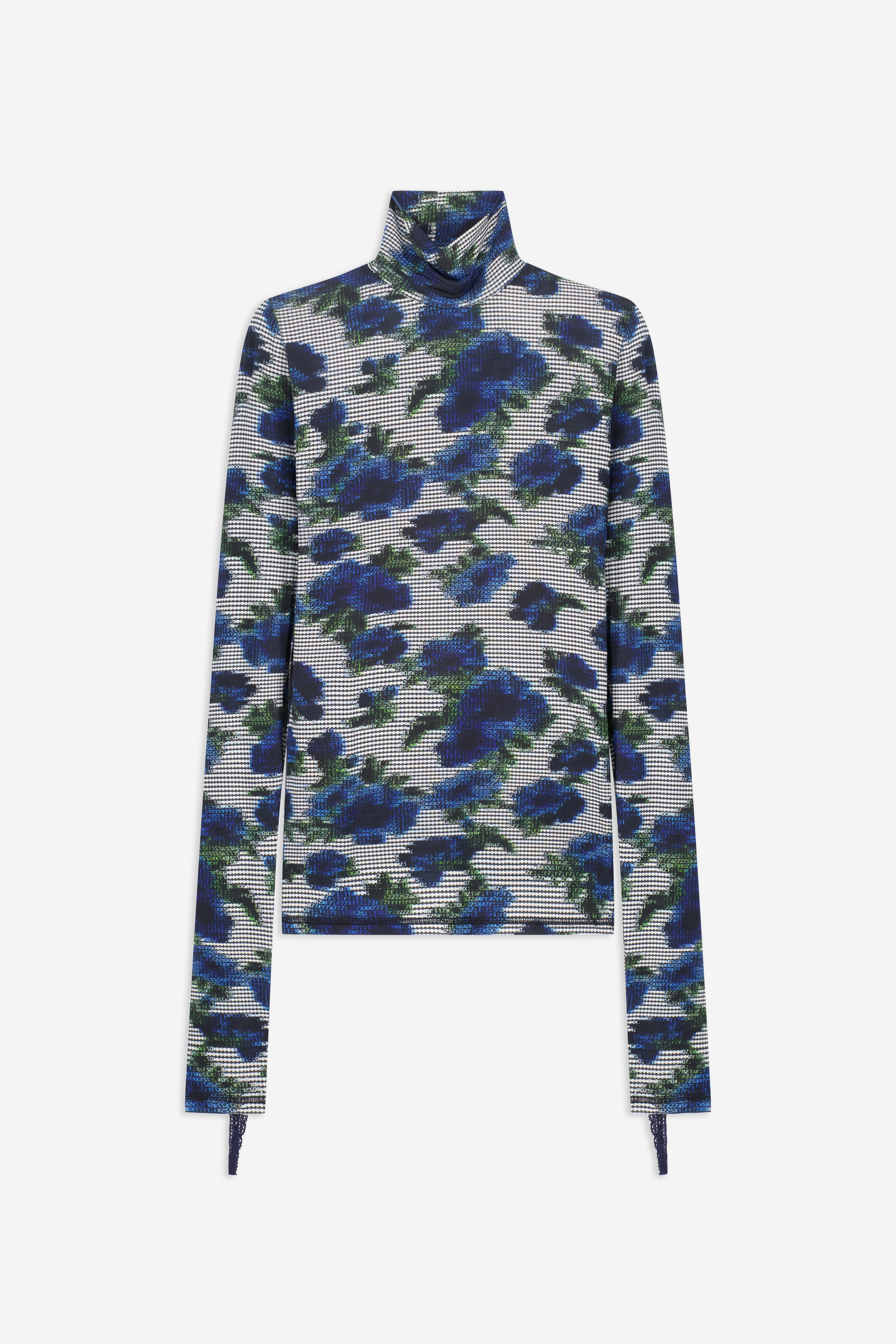 A digital bloom in motion. This stretch turtleneck is crafted from lightweight viscose jersey, designed to contour the body like a second skin. The abstract floral print recalls a pixelated memory - soft, fleeting, and strangely vivid. With its elongated sleeves and clean silhouette, it slips easily as a layer or stands confidently on its own. DETAILS - Composition: Viscose - Made in: Portugal - Sku: COPJS188F5032