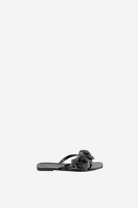 These black slip-on sandals have a jelly like texture as if they have sprung from the sea. Soft and malleable, they are super comfortable yet robust enough to wear on a pebbled beach. They feature large flowers which glisten thanks to their glossy patina. Perfect for holidays and city staycations alike. DETAILS - Composition: 100% Silicone - Made in: Hong Kong - Sku: COPSH84F9013
