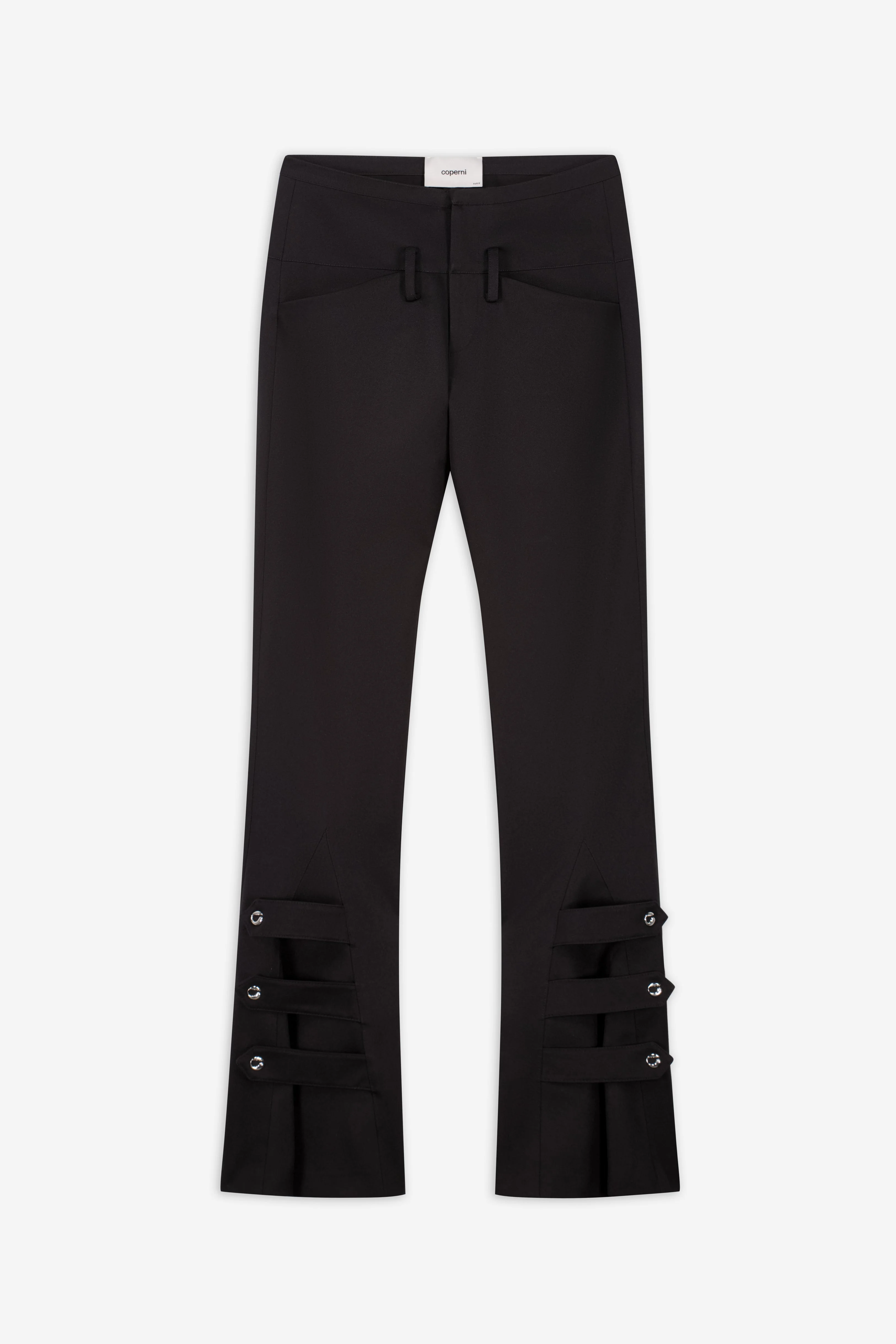 Tailored for structure and edge, these slim-fit trousers are made from recycled fibre. Their standout feature are wide, strapped cuffs punctuated with metallic eyelets - a detail that brings utilitarian energy to an otherwise clean silhouette. DETAILS - Composition: Recycled Polyester - Made in: Romania - Sku: COPP142F3004
