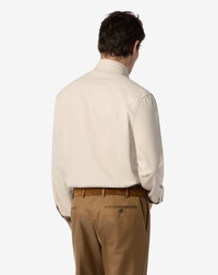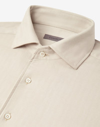 This beige and blue pure cotton flannel shirt with herringbone pattern combines refined texture and snug comfort, perfect for facing the cooler months in style. The dual-use collar – which can be worn open or with a tie – adds versatility and relaxed elegance, making it suitable for both formal and informal occasions. The regular fit ensures balance between structure and freedom of movement, while the soft and warm feel of the flannel enhances the distinctive character of the garment. A sophisticated interpretation of winter casual. DETAILS AND MATERIALS - 100% cotton - long-sleeved cotton flannel shirt with herringbone pattern - regular fit - dual use collar FIT & WASHING - Warm wash up to 40°, do not bleach, dry clean with perchloroethylene, do not tumble dry, maximum iron temperature 150°