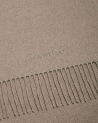 Minimalist and sophisticated, this beige pure cashmere scarf is the expression of the understated elegance of the Corneliani style. Made in Italy with 100% cashmere yarn, it features a naturally soft texture that is ideal to face winter in style. Details like the delicate fringes and discretely embroidered logo enhance its sophisticated look. Its ample size makes this a versatile accessory, created to naturally complement every metropolitan look. DETAILS AND MATERIALS - 100% cashmere - fringed scarf - embroidered logo - size: 37x180 cm - Made in Italy FIT & WASHING - Dry clean with perchloroethylene, do not bleach, do not tumble dry, maximum iron temperature 110°