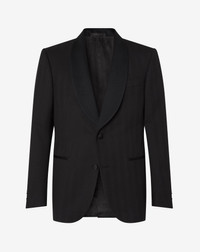 With its Corneliani Code formal menswear collection, Corneliani chooses the best in sartorial elegance to celebrate your special days and make them unforgettable. The black 3D chevron wool tuxedo jacket has a classic fit and side vents at the back for ease of movement. The lined, single-breasted two-button jacket features satin details. DETAILS AND MATERIALS - 100% virgin wool - lined 2-button tuxedo jacket - drop 8 - slim fit - tonal satin shawl lapels - breast pocket - double-welted pockets with tonal satin - side vents on the back - Code lining - satin-covered buttons - back length 74 cm - Made in Italy FIT & WASHING - The model is wearing a size 50 (IT). Model measurements: height 187cm, chest 98cm, waist 82cm, hips 98cm. Dry clean with perchloroethylene, do not bleach, iron at 110° maximum, do not use dryer