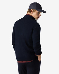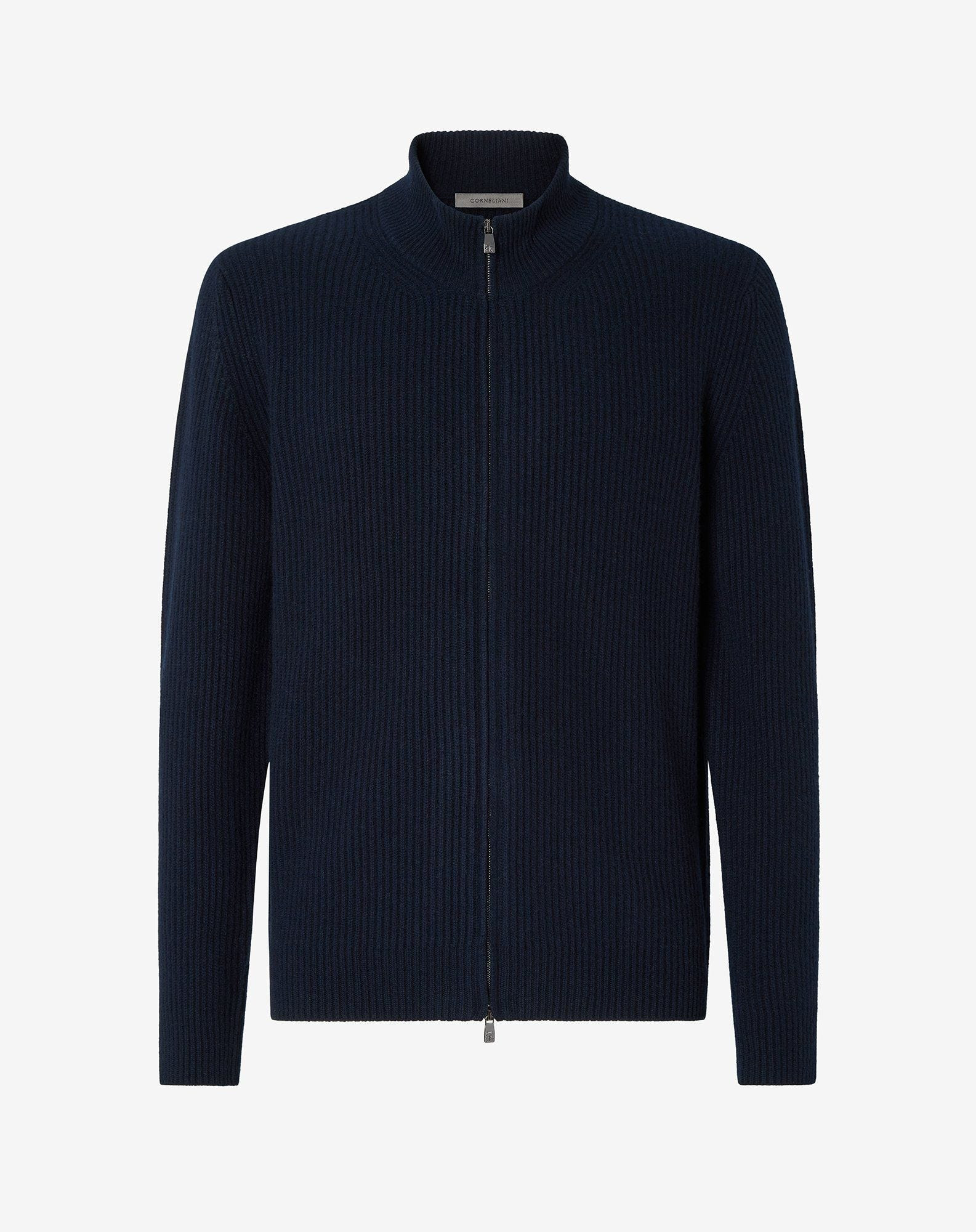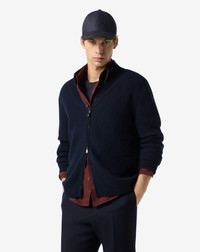 A garment that combines lightness and comfort, this blue full-zip, long-sleeved jumper is made from a fine mix of virgin wool, cashmere and natural fibres. The yarn was treated in a special way to ensure an incredibly soft feel, unparalleled lightness and natural elasticity for a perfect fit and long lasting comfort. Fully made in Italy, this jumper provides the perfect balance between functionality and sophisticated style, designed for the modern man who seeks high quality versatile garments. DETAILS AND MATERIALS - 43% virgin wool, 24% cashmere, 28% viscose, 5% polyamide - full zip long-sleeved wool, viscose and cashmere jumper - 7 gauge - Made in Italy FIT & WASHING - Dry clean with perchloroethylene, do not bleach, do not tumble dry, maximum iron temperature 110°