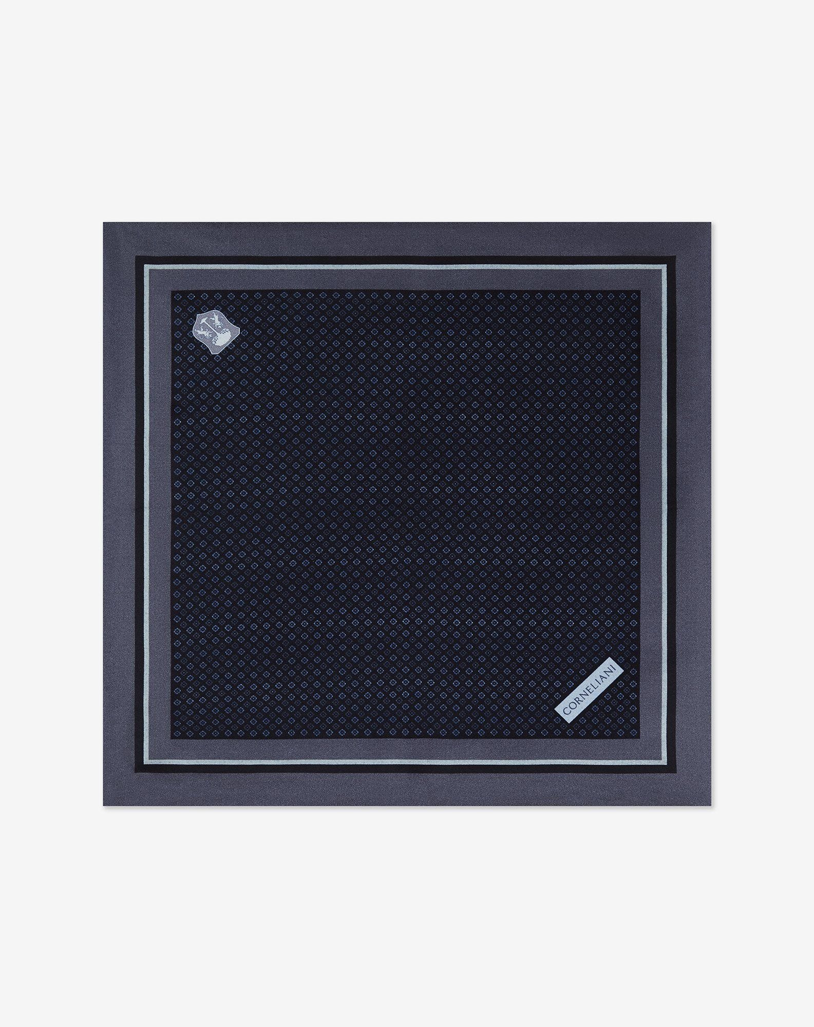 In the Fall Winter collection, accessories take centre stage with timeless elegance. Made from pure silk, this Corneliani pocket square, embodies the brand’s sartorial excellence and the essence of contemporary menswear. The double-sided style in blue and grey features two sophisticated prints designed to enhance formal looks. A versatile accessory that enhances any jacket with a distinctive touch. DETAILS AND MATERIALS - 100% silk - pure silk pocket square with double print - size: 33x33 cm - Made in Italy FIT & WASHING - Dry clean with perchloroethylene, do not bleach, do not tumble dry, maximum iron temperature 110°