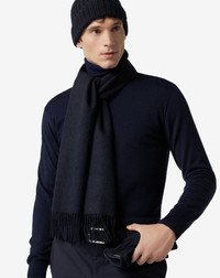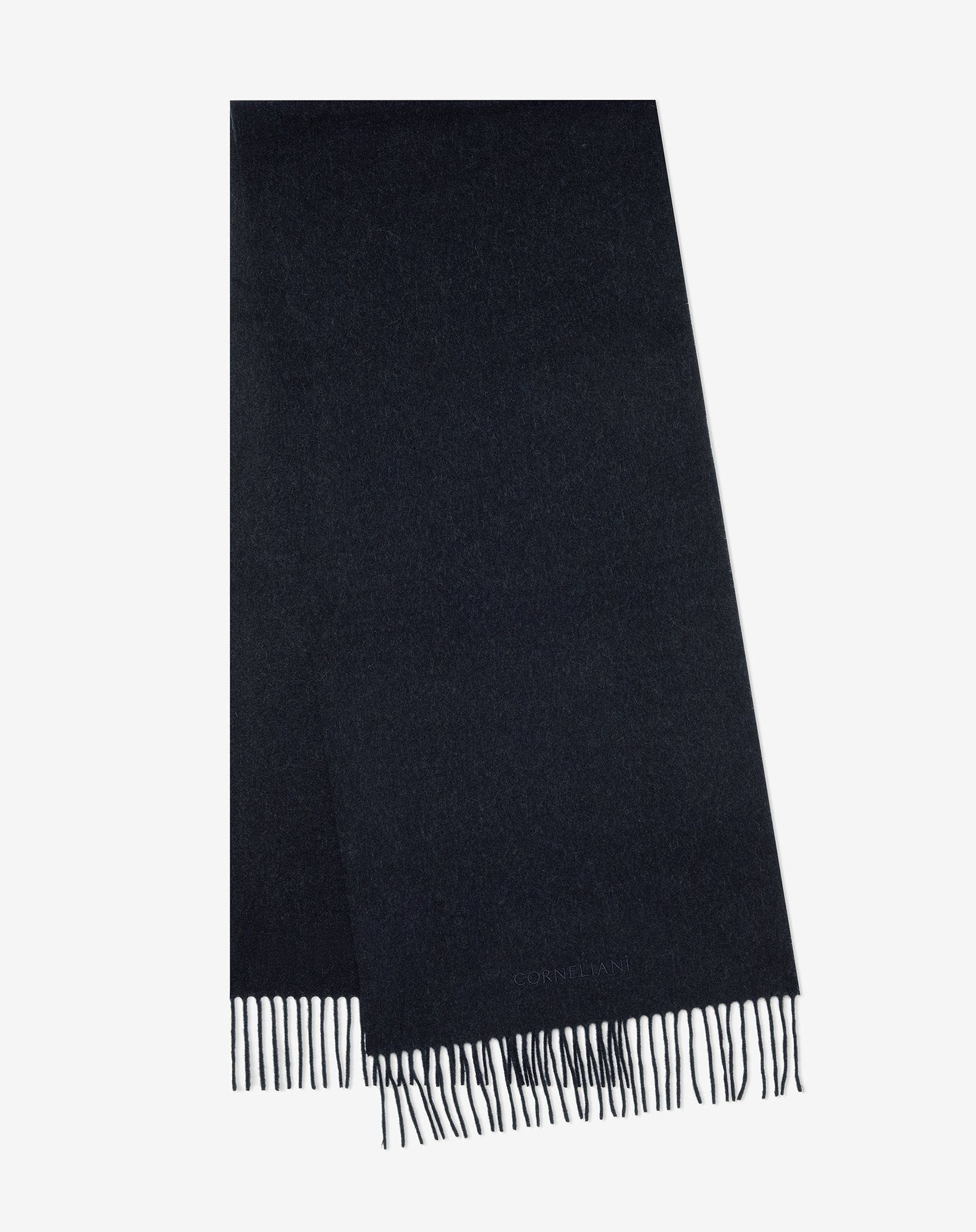 Minimalist and sophisticated, this blue pure cashmere scarf is the expression of the understated elegance of the Corneliani style. Made in Italy with 100% cashmere yarn, it features a naturally soft texture that is ideal to face winter in style. Details like the delicate fringes and discretely embroidered logo enhance its sophisticated look. Its ample size makes this a versatile accessory, created to naturally complement every metropolitan look. DETAILS AND MATERIALS - 100% cashmere - fringed scarf - embroidered logo - size: 37x180 cm - Made in Italy FIT & WASHING - Dry clean with perchloroethylene, do not bleach, do not tumble dry, maximum iron temperature 110°