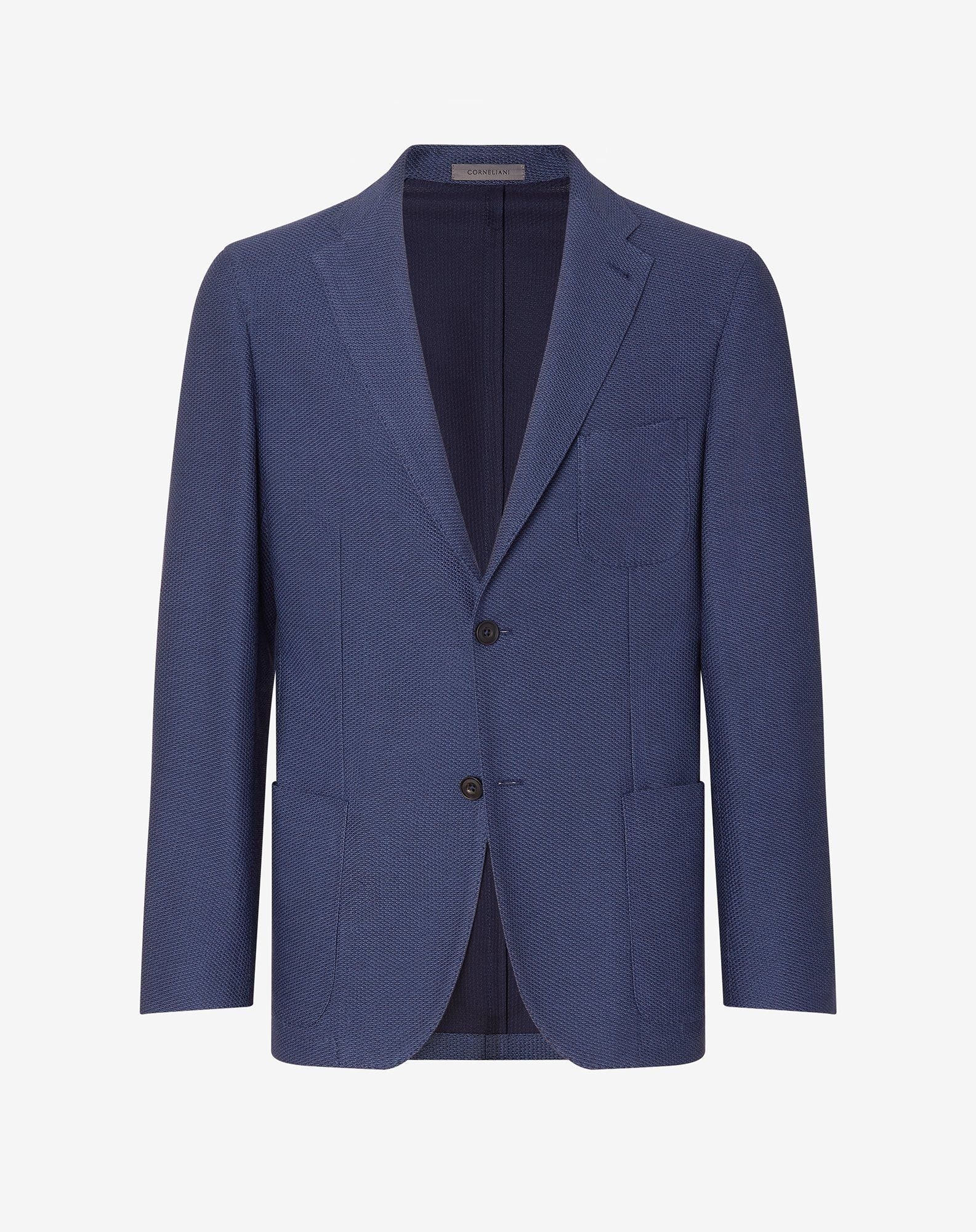 The Adaptive Project: Corneliani set the objective of creating smarter menswear, ready to naturally adapt to the dynamic life of the Corneliani man. With Adaptive, the fabrics’ lightness, breathability and comfort are the main features of the classically designed garments: sophisticated but also suited for increasingly flexible lifestyles. The unlined Men’s single-breasted two-button silk and cotton jacket features a classic fit, appliqued pockets and rear side vents for greater ease of movement. The special silk and cotton pique weave gives the garment three-dimensionality, strength and brightness, thanks to the presence of silk in the weave. DETAILS & MATERIALS - 62% silk, 38% cotton - unlined single-breasted two-button jacket - drop 7 - notch lapels - appliqued pockets - side vents on the back - lapel width 8 cm - back length 73 cm FIT & WASHING - The model is wearing a size 50 (IT). Model measurements: height 187cm, chest 98cm, waist 82cm, hips 98cm. Dry clean with perchloroethylene, do not bleach, iron at 110° maximum, do not use dryer