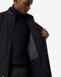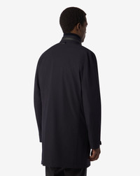 Blue stretch technical fabric caban coat