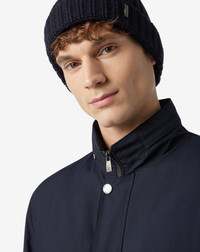 Blue technical fabric coat with detachable inner lining