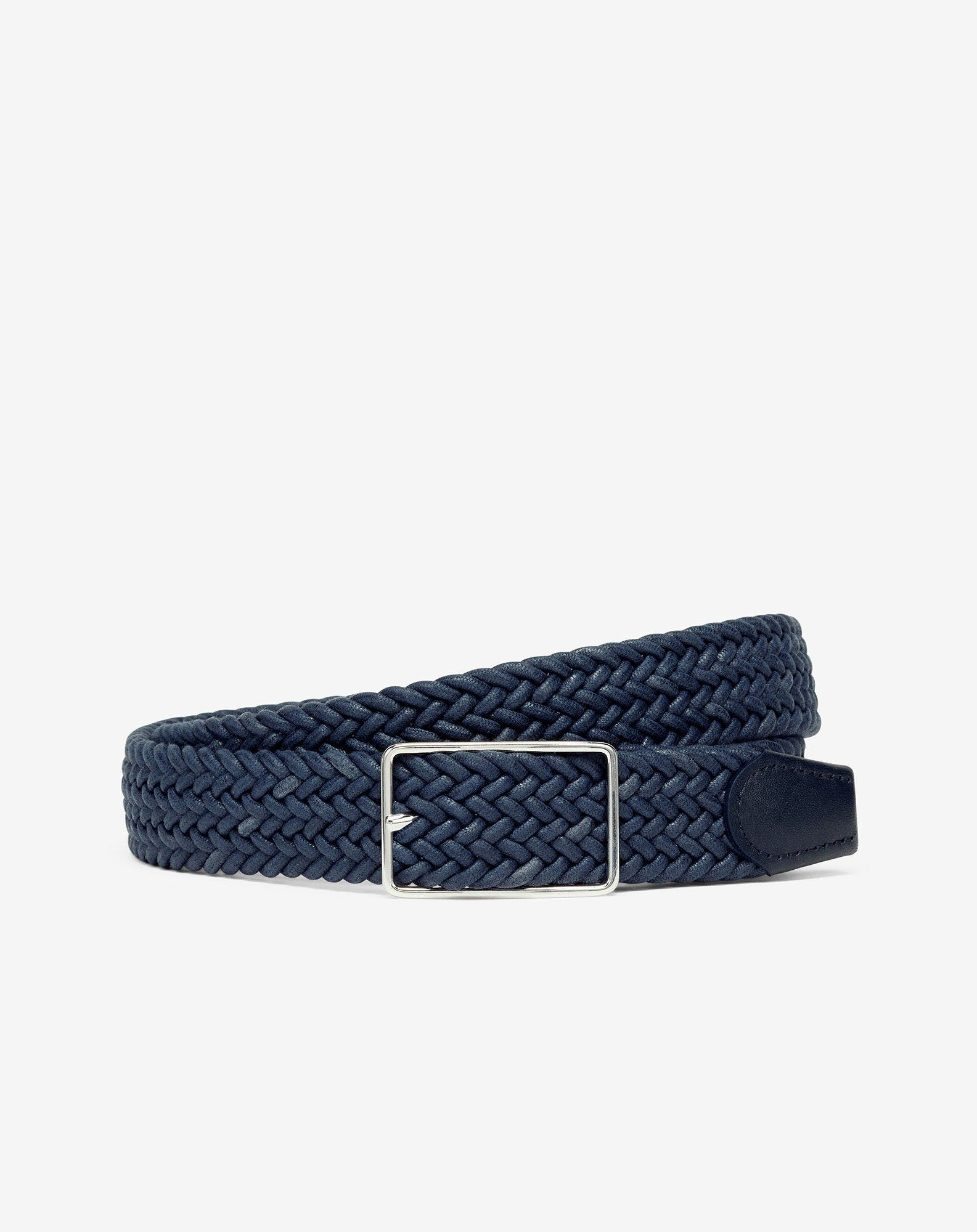 Versatile and contemporary, this accessory is made from blue waxed cotton composed by 80% cotton, 10% elastane and 10% leather. Its artisanal weave adds character and durability, while the 30 mm width make this ideal for casual or smart-casual looks. A nickel-free buckle for added comfort shows attention to detail. Made in Italy, where quality meets uncompromising style. DETAILS & MATERIALS - 80% cotton, 10% elastane, 10% leather - braided waxed cotton belt - height 30 mm - nickel-free buckle - Made in Italy
