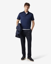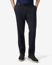 Blue chinos made from fine wool and stretch cashmere, designed to combine elegance with performance. Regular fit and superior comfort guaranteed by the stretch waistband on the rear and balanced drop 7. This garment is part of the Techwool Project, a selection of garments featuring this high-tech fabric blending the natural charm of merino wool with the softness and durability of polyamide fibres. This combination generates a compact and versatile texture that is also wrinkle-free and water-repellent, perfect for those who seek a sophisticated yet functional garment. Unlined, flat front trousers featuring waistband, slanted side pockets and welt back pockets, for dynamically smart style that fits both urban and outdoor days. DETAILS AND MATERIALS - 94% virgin wool, 4% cashmere, 2% elastane - flat front chino trousers - unlined - drop 7 - regular fit - zip and waistband closure - belt loops - waistband with elastic on the back - slant side pockets - welt back pockets - bottom width 19 cm FIT & WASHING - Dry clean with perchloroethylene, do not bleach, do not tumble dry, maximum iron temperature 110°