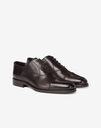 Made in Italy with aged calfskin toe, the brown Oxford shoes are a classic of men's fashion. These shoes are an elegant and refined style, perfect for formal occasions. Aged calfskin adds a distinctive touch that makes each pair one of a kind. DETAILS & MATERIALS - 100% leather - Oxford shoes with aged calfskin toe - leather sole - Made in Italy