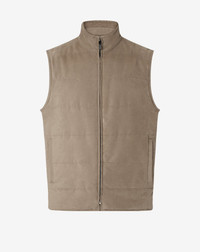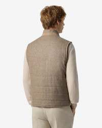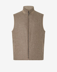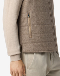 The brown micro patterned wool and cashmere gilet is a versatile, classy garment, perfect for those seeking both comfort and style. Reversible and wadding-padded, this garment combines soft warmth with functional technical details. The eco-suede trims on pockets, neckline and armhole add a contemporary touch, while the eco-suede lining with multiple pockets and dual cursor zip closure are super practical. Made in Italy with 65 cm length and drop 7 size, this gilet is the perfect garment for facing the fresher days with class. DETAILS AND MATERIALS - 94% virgin wool, 6% cashmere - reversible quilted and wadding padded gilet - drop 7 - eco-suede trim on side welt pockets, neckline and armhole - metal dual cursor zip closure - eco-suede lining with two welt pockets - knit lining on neckline - two vertical inner pockets with zip - two horizontal inner pockets - inner microsuede details - length 65 cm - Made in Italy FIT & WASHING - Dry clean with perchloroethylene, do not bleach, do not tumble dry, maximum iron temperature 110°