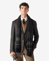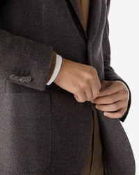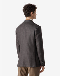 A synthesis of lightness and contemporary sophistication, this single-breasted brown virgin wool, silk and cashmere hopsack jacket expresses the perfect balance between comfort and style. Part of the Academy Light range, it is designed for casual elegance, with an unlined construction and natural shoulders that ensure maximum freedom of movement. The slim fit enhances the figure without constraints, while the 9 cm notch lapels with AMF stitching on the edge and natural horn buttons reveal sartorial accuracy. Side patch pockets, welt breast pocket and double vents on the back complete the design with an urban and versatile spirit. DETAILS AND MATERIALS - 89% virgin wool, 7% silk, 4% cashmere - single-breasted two-button wool, silk and cashmere hopsack jacket - Academy Light range - unlined - drop 7 - slim fit - natural shoulders - notch lapels - lapel width 9 cm - AMF stitching at the edge - welt breast pocket - patch side pockets - double side vent - natural horn buttons - width 74 cm - Made in Italy FIT & WASHING - This garment has a slim fit. The model is wearing a size 50 (IT). Model’s measurements: height 187cm, chest 98cm, waist 82cm, hips 98cm. Dry clean with perchloroethylene, do not bleach, do not tumble dry, maximum iron temperature 110°