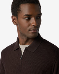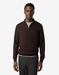 Brown zip-up extra fine wool polo shirt