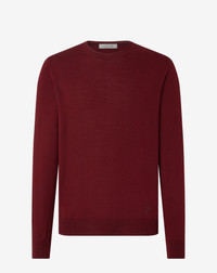 This burgundy long-sleeved crew neck jumper made from extra fine combed triple twisted pure merino wool, a yarn characterised by elasticity, strength and a bright, compact feel. With its medium gauge, the garment is both durable and resistant to peeling so that it can be easily machine washed at low temperatures. The yarn is OEKO-TEX-certified, to guarantee sustainable and traceable quality. DETAILS AND MATERIALS - 100% virgin wool - long-sleeved crew neck jumper made from extra fine combed triple twisted merino wool - 12 gauge - Made in Italy FIT & WASHING - Dry clean with perchloroethylene, do not bleach, do not tumble dry, maximum iron temperature 110°
