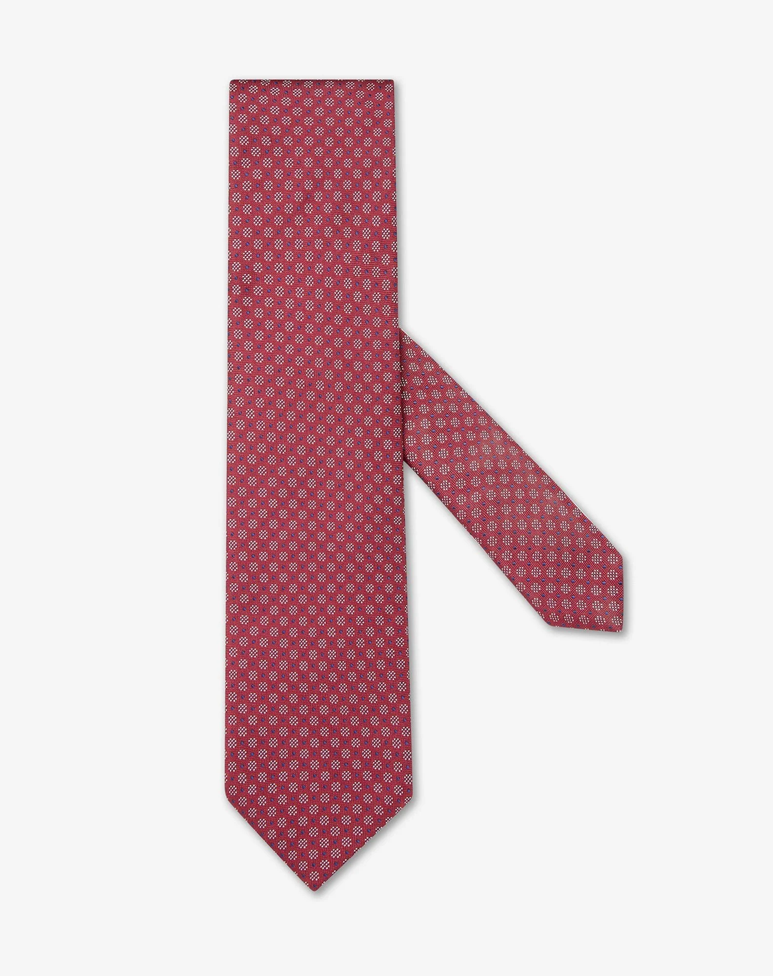 A pure silk burgundy tie with a sophisticated micro floral pattern, designed to add a distinctive note to formal looks. The 8 cm blade maintains classic and balanced proportions, enhancing the presence of the motif without excess. An elegant and versatile accessory Made in Italy, ideal to complete the contemporary man's wardrobe in style. DETAILS AND MATERIALS - 100% silk - pure silk classic tie - blade 8 cm - Made in Italy