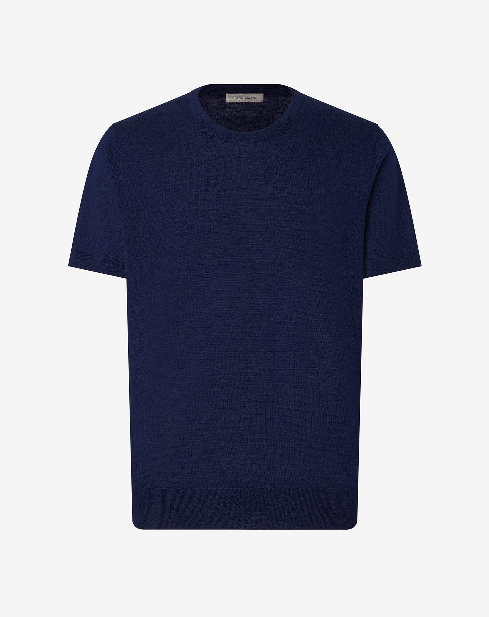 China blue linen and silk crew neck t-shirt